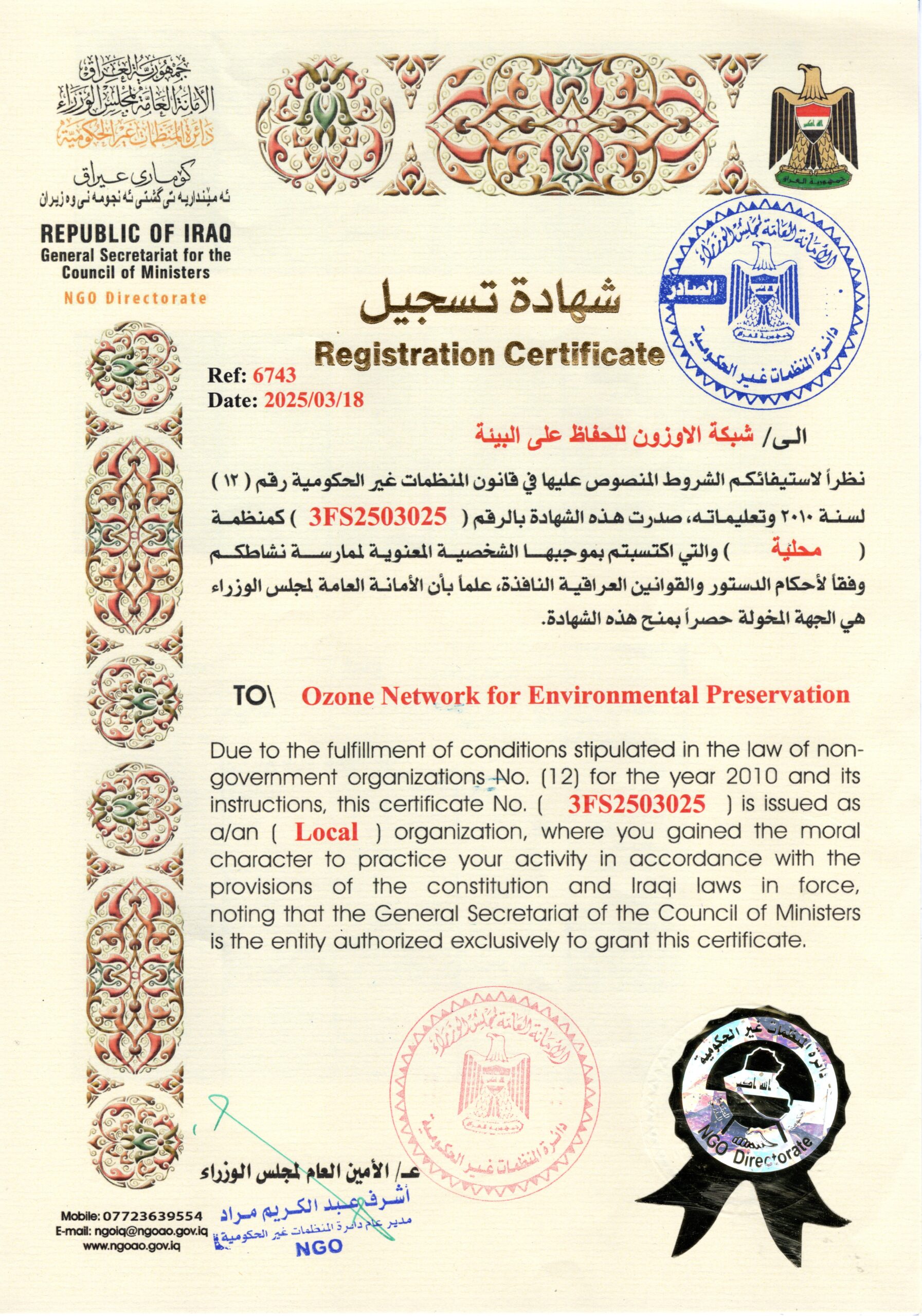 Organisation Register ONEP /Kurdistan Region – Iraq